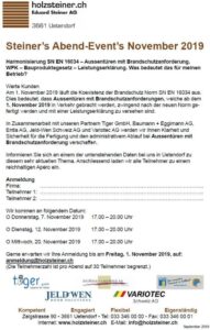 Am 1. November 2019 läuft die Koexistenz der Brandschutz Norm SN EN 16034 aus. Dies bedeutet, dass Aussentüren mit Brandschutzanforderungen, welche ab dem